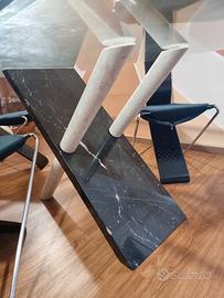 tavolo cristallo 2mt x 1mt base in marmo ( se vedete opacizzato è perché è coperto h24 da una pellicola trasparente)