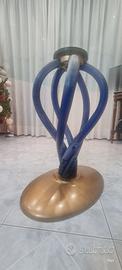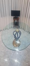 Stupendo tavolo marca REFLEX in cristallo ovale, spessore 2cm con piede intrecciato in vetro di murano ,colore blue cina con base in oro anticato.Misure Altezza:75cm Largh:120cm Lungh:200cm Base:60×45