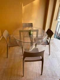 Tavolo rotondo diametro cm 110 piano cristallo extra chiaro sp. mm10 e basamento in acciaio verniciato alluminio. Euro 350