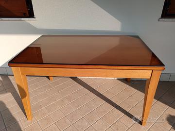tavolo in legno di faggio più vetro sopra dimensioni 130x90