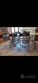 vendo tavolo e sedie in ferro battuto colore tracite ,con pianca in marmo!!! tommaso 3284847950