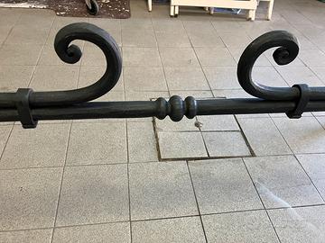 Tavolo con struttura in ferro battuto a mano al maglio con ripiano in cristallo. Dimensioni: ripiano 180x85x1,3 cm; altezza del tavolo 74 cm. Consegna diretta a Costa Volpino.