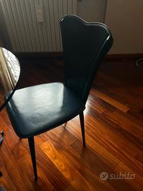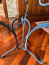 tavolino in ferro battuto e cristallo diametro del tavolo 80 cm con tre sedie in cuoio blu