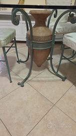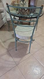 Vendo spendito tavolo in ferro battuto con vasi a forma di ancora intatto cristallo spesso 2 cm. N 4 sedie tutto intatto. Nn spedisco zona roma casalotti nn trattabili.