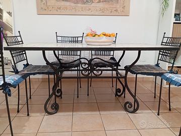 vendo causa inutilizzo tavolo in ferro battuto pieno integro in tutte le sue parti come nuovo piano d'appoggio piastrellato indistruttibile + 6 sedie come nuove sempre in ferro battuto indistruttibili e comode misura del tavolo: