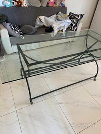 tavolo in ferro battuto e piano piano in cristallo