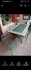 tavolo in ferro battuto, 10 sedie, prolungamento, panchine e fioriera