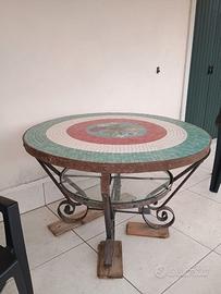 Bellissimo tavolo in ferro battuto e mosaico, con decoro centrale. Diametro 120 cm altezza 74 cm