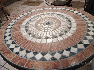 Bellissimo tavolo in ferro battuto e pietra, eseguito da esperto mosaicista.