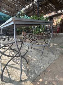 Tavolo in ferro con piano di cotto