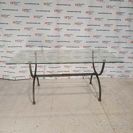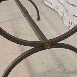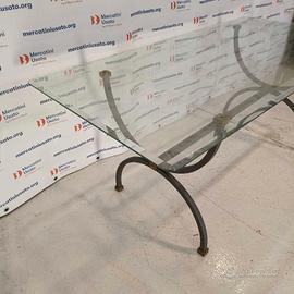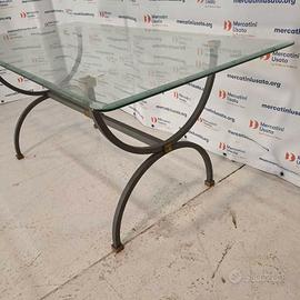 Tavolo in ferro con vetro molato. Base in ferro laccato nero con inserti in