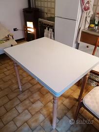 Vendo tavolo in formica bianco allungabile anni 70/80 ( in ottime condizioni) insieme cedo anche 4 sedie in legno / paglia come da foto. Prezzo ragionevolmente trattabile.