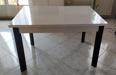 Tavolo in formica bianco, dimensioni del piano 90 x 120cm spessore 3cm, altezza da terra 76cm, piano colore bianco gambe colore nero. No spedizioni, ritiro a Monza