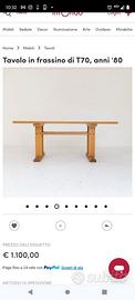 Tavolo in frassino modello t 70 anni 80 in buonissime condizioni. Misure alt.74 cm larg.180cm profondità 85cm. Ritiro a domicilio a carico del acquirente. Prezzo trattabile.