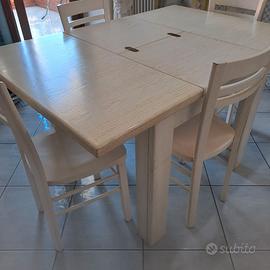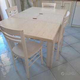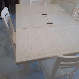 Tavolo in frassino, colore bianco allungabile, con 4 sedie bianche
