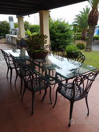 Tavolo in Ghisa,con telaio in ferro da cm 80x120 , bellissimo con un piano in cristallo o in Travertino il tavolo non è verniciato come in foto,ideale da esterno, possibilità di consegna su Roma.