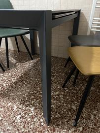 Vendo tavolo in grès porcellanato grigio, misure: m 1,22x 0,80 prolunga 0,60. N4 sedie Design colorate