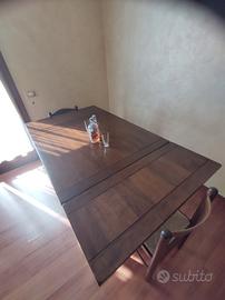 tavolo interamente in legno, allungabile, stile arte povera. Misure da chiuso 100x100, allungabile a 140 e 180 cm. altezza 80 cm. Ottimo, usato praticamente mai.