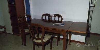 tavolo in legno 155x85 allungabile a 195 e 235 altezza 80 (65 da pavimento a sotto) in buone condizioni + 5 sedie da sistemare omaggio smontaggio e trasporto a carico dell'acquirente