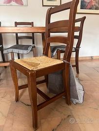 Si vende tavolo in legno realizzato a mano da falegname con sedie in legno e seduta in paglia.