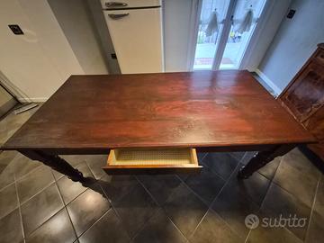 Vendesi tavolo in legno, buone condizioni, dimensioni 2X1X0.80m. Gambe a cipolla. Con cassetto estraibile. Prezzo trattabile. Trasporto a carico dell’acquirente.