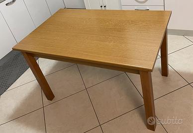 Vendo tavolo in legno più sei sedie. Il tavolo misura 130x80 centimetri e si allunga fino a 180x80.