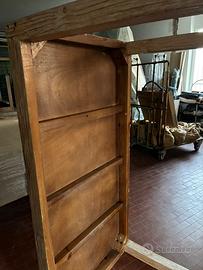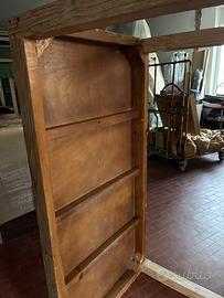 TAVOLO IN LEGNO A DOGHE MULTICOLORE MISURA mt.1,60lunghezza cm. 80 di larghezza cm.76 di altezza, le zampe sono di spessore cm. 7 per 7 cm ; ben strutturato come si può vedere dalla foto fatta dal sotto tavolo