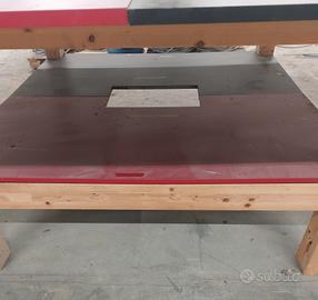 Tavolo in legno con piano lavoro bicolore nero - bordeaux misure 240 x 240 H 109