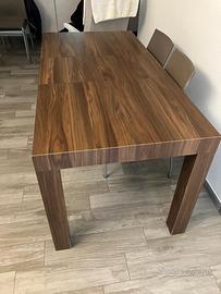 Tavolo in legno colore marrone scuro, allungabile Con due estensioni da 40cm. Cadauna . Utilizzato per un paio di anni ma ancora in buono stato. Gia’ smontato. E posizionato in un garage. Trasporto a carico dell’acquirente.