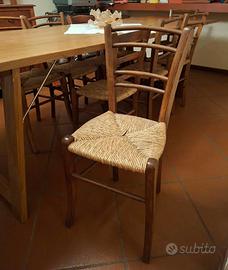 Vendo tavolo in legno allungabile con 10 sedie in legno stile romagnolo. Il tavolo misura di base 228x85 cm con due allunghe da 50 cm ciascuna. È alto 79 cm. Le allunghe rimangono attaccate al tavolo come in foto.