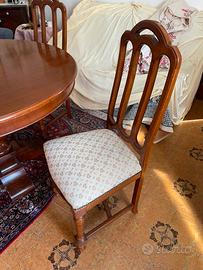 Sono comprese 6 sedie in legno con seduta imbottita in ottime condizioni.