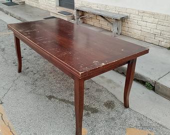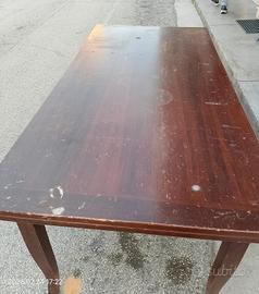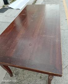 tavolo in legno massello allungabile con difetti visibili da foto. il tavolo si allunga e non ha altri tipi di problemi, solido, stabile le foto mostrano gli unici difetti cioè le macchie di calore e strisci sopra il tavolo