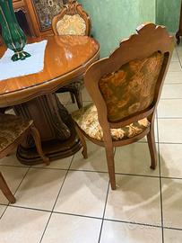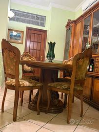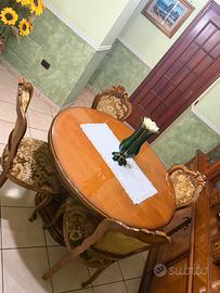 Tavolo in legno allungabile 10 posti, come nuovo, compreso di 4 sedie come nuove . Vendibile anche separatamente. Prezzo trattabile. Tavola lunghezza 114