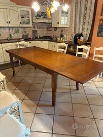 Tavolo da pranzo allungabile in legno massello color noce caldo.