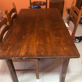 Tavolo in legno antico ristrutturato con qualche parte da riprendere, mis 80 x 140