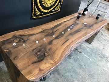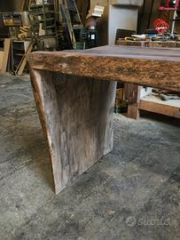 Realizzo tavoli fatti interamente a mano con ausilio di ascia scalpello pialla motosega , esclusivamente in legno antico di pregio selezionato ,massiccio su richiesta.