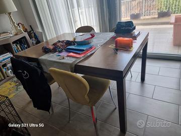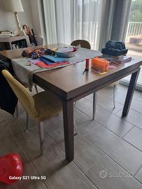 Tavolo 110x110, allungabile in 2 misure: 160 e 210; marca Arca, tutti in legno massello color grigio. 4 sedie marca Presotto, tutto in ottime condizioni. Richiesta 500 euro, non spedisco.