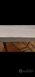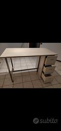 bellissimo tavolo in legno con cassetti e ripiani. Base in inox. lunghezza 1,60 larghezza 80 altezza 1,04 ideale per sgabelli . piccolo segno come da foto.