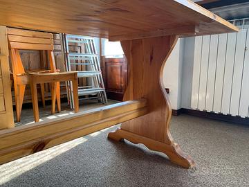 Tavolo anni 70 in legno, acquistato nel 1979. La superficie è chiaramente usata ma il rapporto qualità prezzo è ottimo.