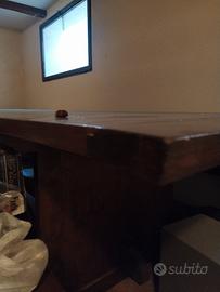 tavolo lungo 4,50m ×1.10 con 4 panchine che misurano 2.25×36cm.
