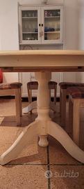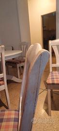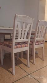 Misura 1,60 x 1,05 metri, allungabile a 2 metri. Abbinate 6 sedie in legno bianche (una è stata riparata come si vede dalla foto).