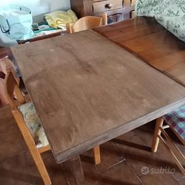 Tavolo in legno massiccio, fatto da falegnameria. Dotato di due prolunghe, misure: 2.2 m senza prolunghe, 3.4m con le prolunghe, 5 cm di spessore, altezza da terra 82 cm, 0.94 m di larghezza.