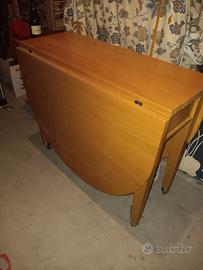 Tavolo ovale in legno chiaro con chiusura a ribalta con ruote bloccanti e cassetto Misure: altezza cm 78, chiuso cm. 90x40;aperto cm. 90 x 163 Ritiro a domicilio