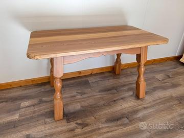 Tavolo chiaro in legno di larice con gambe tornite per gli amanti dell’arredo unico e artigianale.