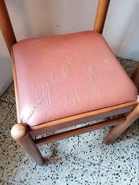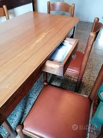 Tavolo in legno con piano in formica, con 6 sedie con seduta morbida.(una sedia ha la seduta un po' rovinata-vedi penultima foto). Misure tavolo: lunghezza 140cm, larghezza 71 cm, altezza 77 cm Misure sedie: altezza allo schienale 85 cm, seduta 40x40 cm, altezza seduta da terra 47 cm. Per altre informazioni scrivetemi.