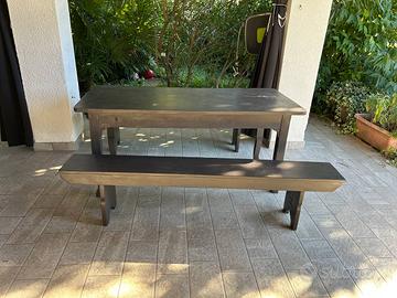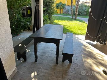 Tavolo in legno per esterno con 2 panche - disponibile fino al 6 marzo dimensione tavolo : larghezza 83 cm lunghezza 180 cm altezza 81 cm dimensioni panche : larghezza 28 cm lunghezza 199 cm altezza 46 cm