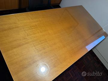 Tavolo in legno con copertura in vetro