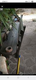 Tavolo in legno con due sedie più panca con schienale h 80 Lunghezza 245 Profondita 70 Solo da grattare un pó, adatto per taverna/esterno sotto una tettoia Prezzo non trattabile