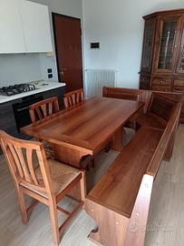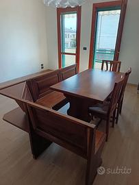 BELLISSIMO SET DI TAVOLO 6 POSTI DI LEGNO MASSELLO, PANCA CON GIRO AD ANGOLO, TRE SEDIE IN LEGNO, MOBILE CON VETRINA IN LEGNO, TUTTO TENUTO IN OTTIMO STATO, IDEALE PER CUCINA O TAVERNA!!TOTALE DI TUTTO EURO 500,00 RITIRO SOLO A Favaro-VE. MISURE TAVOLO 140x180 PANCA 207X135 MOBILE 205X205 Per qualsiasi informazione non esitate a contattarmi. Grazie