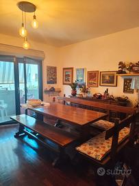 Tavolo in legno massello con panche, nuovo. Adatto per sala da pranzo, cucina, tinello o terrazzo. Misura 80x200